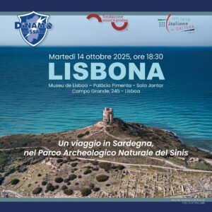 Presentazione “Un viaggio in Sardegna, nel Parco Archeologico Naturale del Sinis” organizzata dalla Fondazione Mont’e Prama di Cabras (OR) con la collaborazione dell’Istituto Italiano di Cultura di Lisbona, nell’ambito della programmazione della XXV Settimana della Lingua Italiana nel Mondo. Dopo l’evento saranno serviti prodotti tipici sardi. Martedì, 14 ottobre 2025, alle 18.30 Sala Jantar, Palácio […]