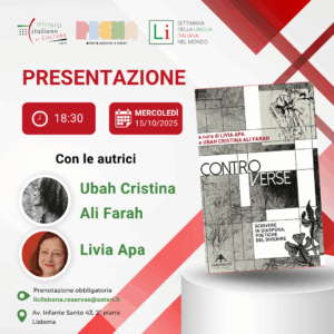 Presentazione del volume “Controverse. Scrivere in diaspora, poetiche del divenire” con le curatrici Livia Apa e Ubah Cristina Ali Farah, nell’ambito della programmazione della XXV Settimana della Lingua Italiana nel Mondo e in collaborazione con la Libreria Piena libri persone visioni. Mercoledì, 15 ottobre 2025, ore 18.30 Istituto Italiano di Cultura di Lisbona Av. Infante Santo, […]