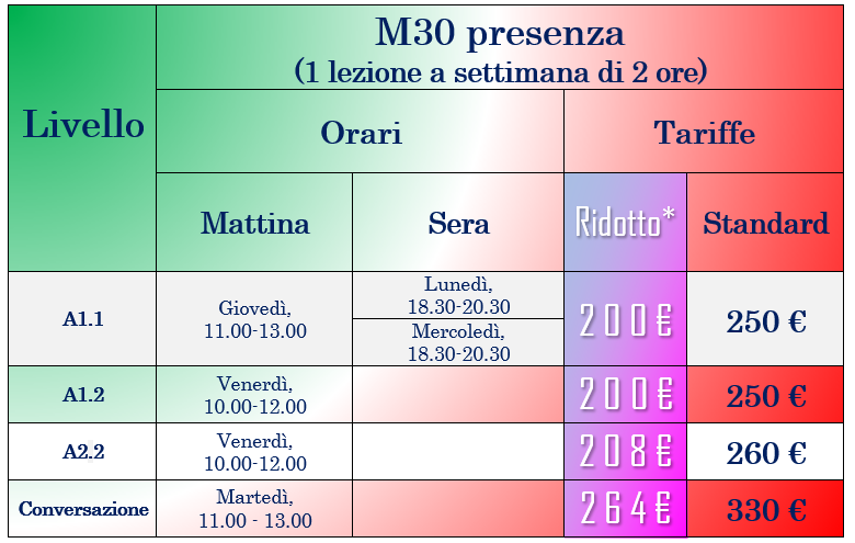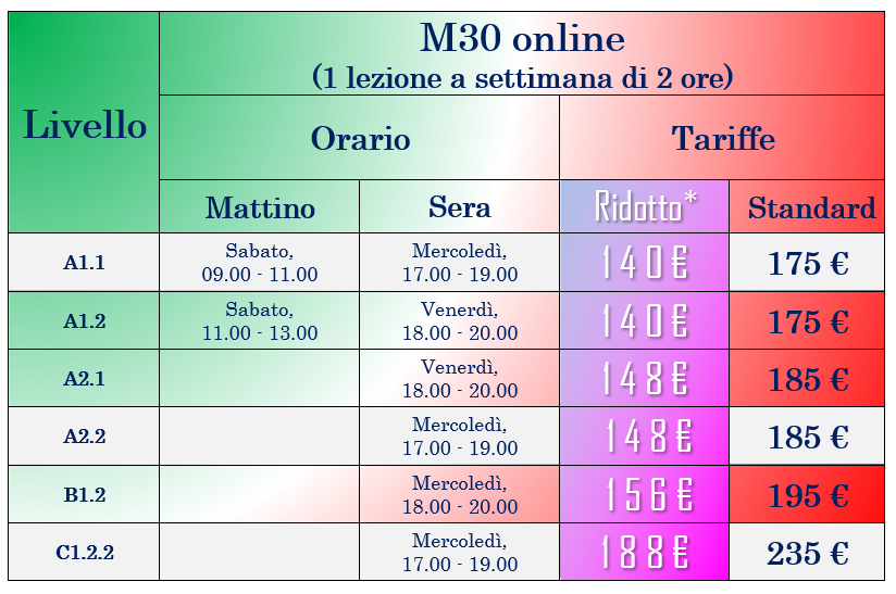 Corsi M30 – lunedì