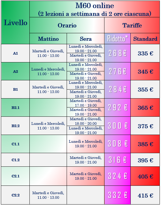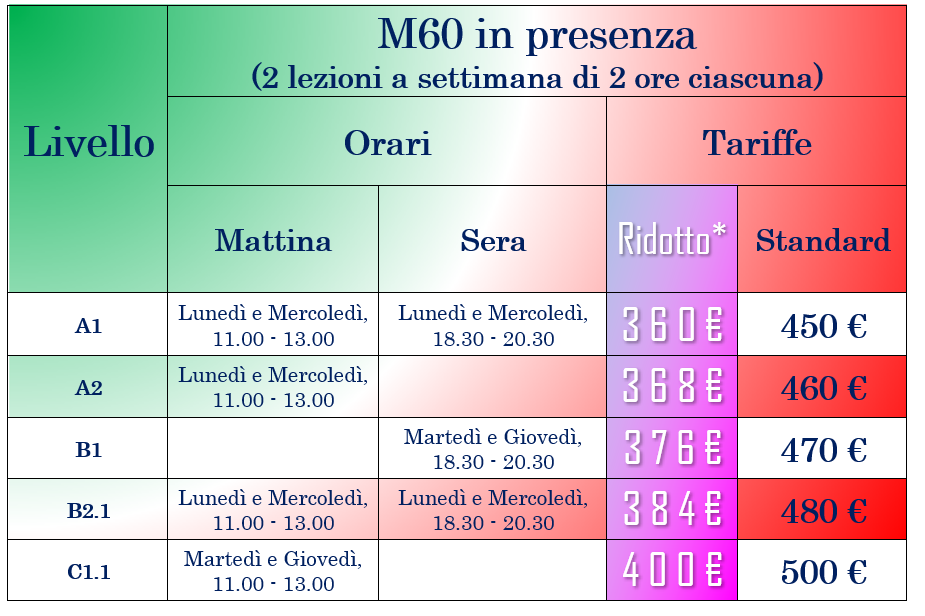 Corsi M60 – lunedì e mercoledì