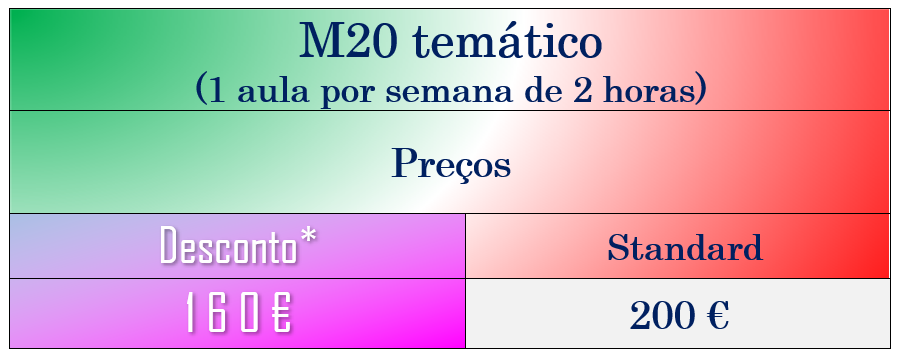 Duração: 20 horas – das 16h00 às 18h00, segundas-feiras