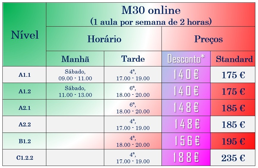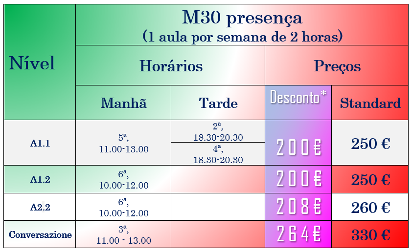 O IIC de Lisboa oferece cursos de língua e cultura italiana em formato online e presencial com início a partir de segunda-feira, dia 2 de março de 2026. Os cursos terminerão entre a terça a quarta semana de junho de 2026, conforme os calendários disponíveis no fundo desta página.